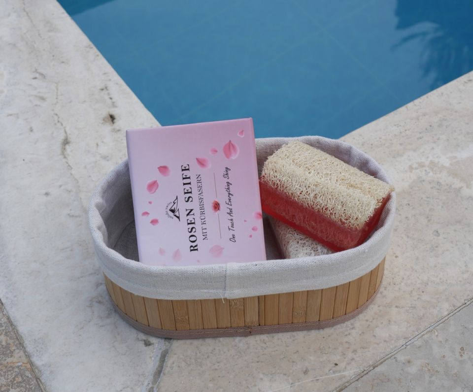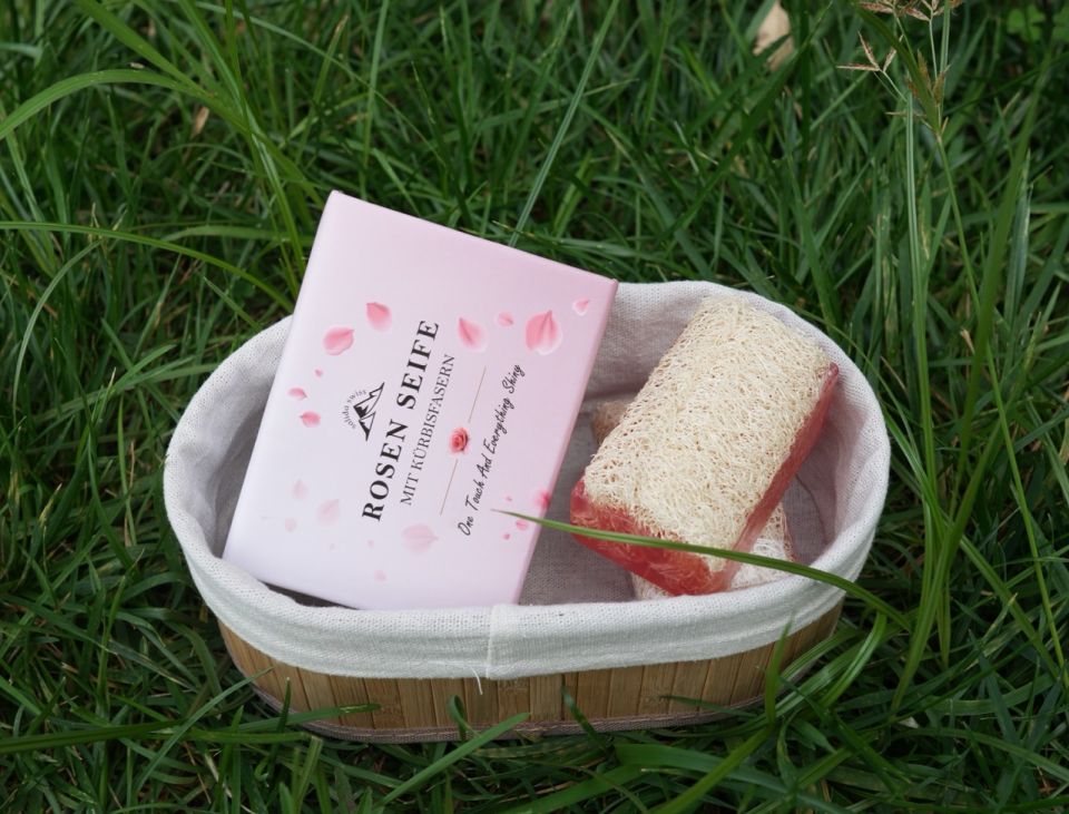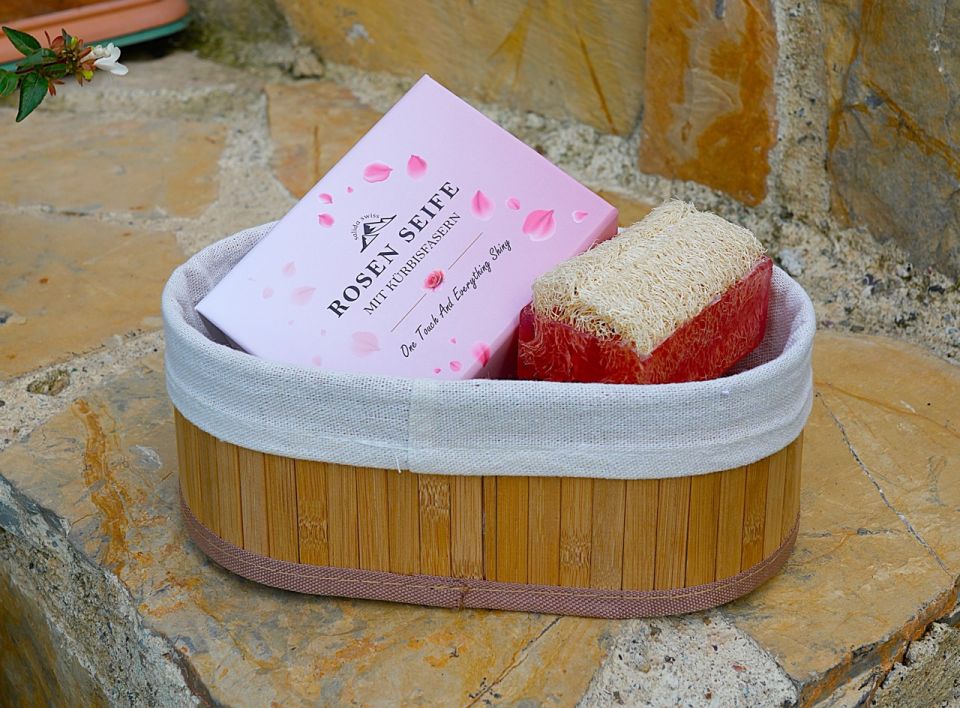 - Uživajte u svježem mirisu i nježnom pilingu našeg ručno rađenog Salida sapuna od švicarske ruže sa 100% prirodnim vlaknima bundeve.